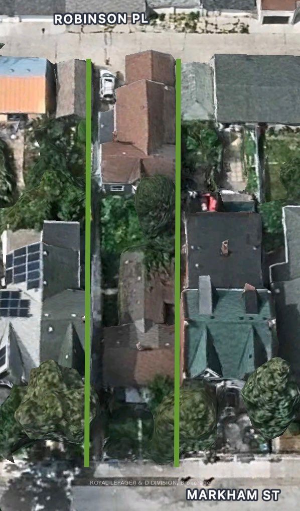 This is a goldmine. Two detached houses on one huge lot. Fronting on both, Markham Street and Robinson Place. As you imagine how this prime Queen West property could be developed, you will recognize the need to act quickly and secure it. Picture a stunning 4000sf modern masterpiece... or two seperate buildings... or a multi-unit development... or....