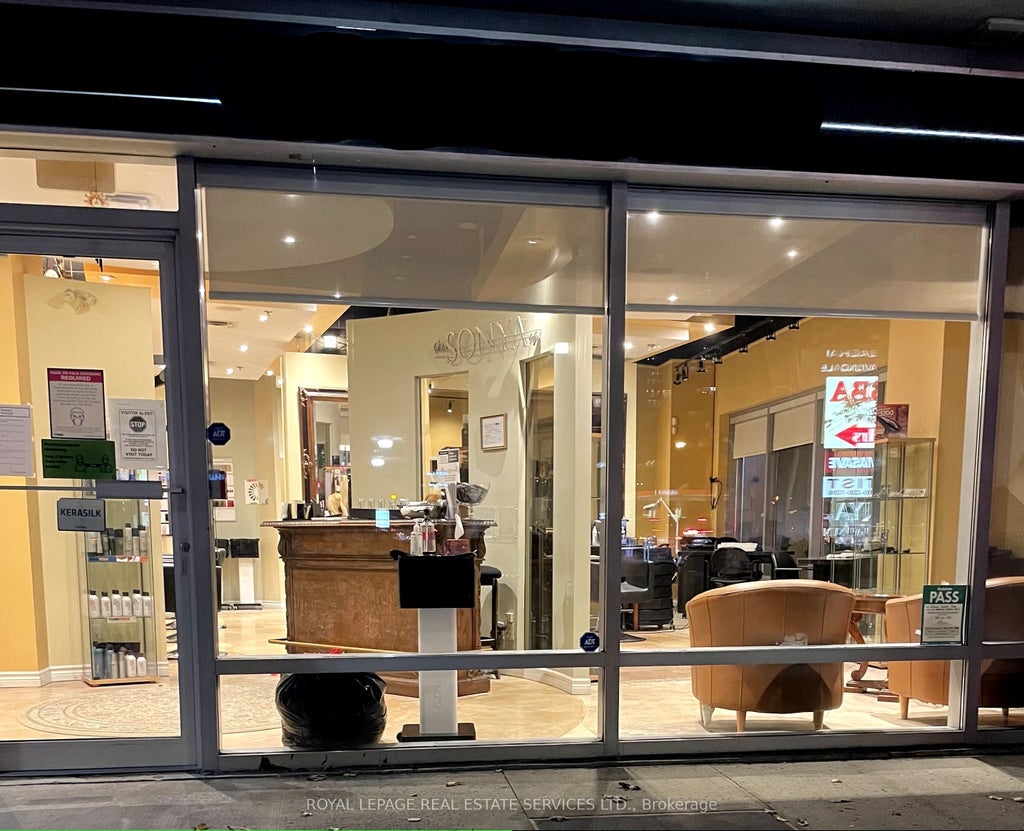 Corner unit facing Yonge Street with lots of windows and visibility, Thriving salon business for over 20 years, owners would like to retire. One block south of Yonge and Sheppard with on-site visitor parking. Located in a densely populated residential-area with many condos, office buildings and town homes within walking distance. Gross rent of $7,783.92/month plus HST. Lease runs until Dec. 31, 2029, with two further 5 year options. Extra income from an in-house aesthetician of $2000/mo. + HST. Highly profitable business.