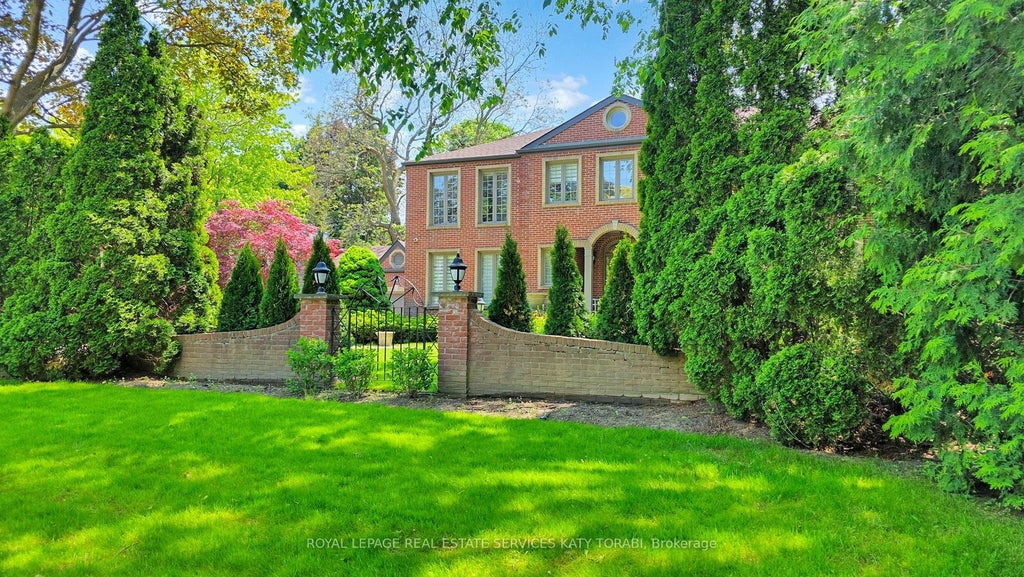 Exceptional Red-brick Georgian Estate In A Prestigious Neighbourhood. Welcome To This Timeless Luxury Residence Offering Approximately 6,260 Sq Ft Of Refined Living Space, Nestled On An Expansive 100 By 133.66 Ft Lot With Mature Trees And A Gated Front Garden. Step Inside To A Grand Two-storey Foyer Featuring Polished Marble Floors, A Showstopping Chandelier, And An Elegant Curved Staircase. Rich Hardwood Floors And Custom Millwork Flow Seamlessly Throughout The Main And Upper Levels. The Chefs Kitchen Is Outfitted With High-end Appliances, Sleek Cabinetry, Quartz Counters, Brass Hardware, And An Oversized Island Perfect For Entertaining. Multiple Walk-outs Extend To A Spacious Outdoor Deck With Distinct Lounge And Dining Areas, Ideal For Hosting Or Relaxing In Privacy. This Home Boasts Generously Sized Bedrooms With Custom Closets And Sun-filled Windows. Spa-inspired Bathrooms Feature Heated Floors, Double Vanities, Luxurious Tilework, Custom Cabinetry, And Designer Gold Fixtures. The Fully Finished Basement Redefines Lifestyle Living featuring A Billiards Area, Home Gym With Mirrored Walls, Yoga And Meditation Room, A Stunning Glass-enclosed Wine Display, Full Bathroom With Walk-in Shower, And A Stylish Bar With Built-in Cabinetry. Two Separate Laundry Roomsone On The Upper Level And One In The Basement offer Added Functionality. The Private Backyard Is Surrounded By Lush Landscaping And Includes A Large Deck With BBQ Hook up, Multiple Sitting Zones, And Walk-outs To Upper Balconies Overlooking The Treed Grounds. Ideally Located Near Top-ranked Schools, Scenic Parks, And Upscale Amenities, This Exquisite Property Blends Elegant Design, Modern Comfort, And Resort-like Livingoffering A Rare Opportunity In One Of The City's Most Desirable Neighbourhoods.