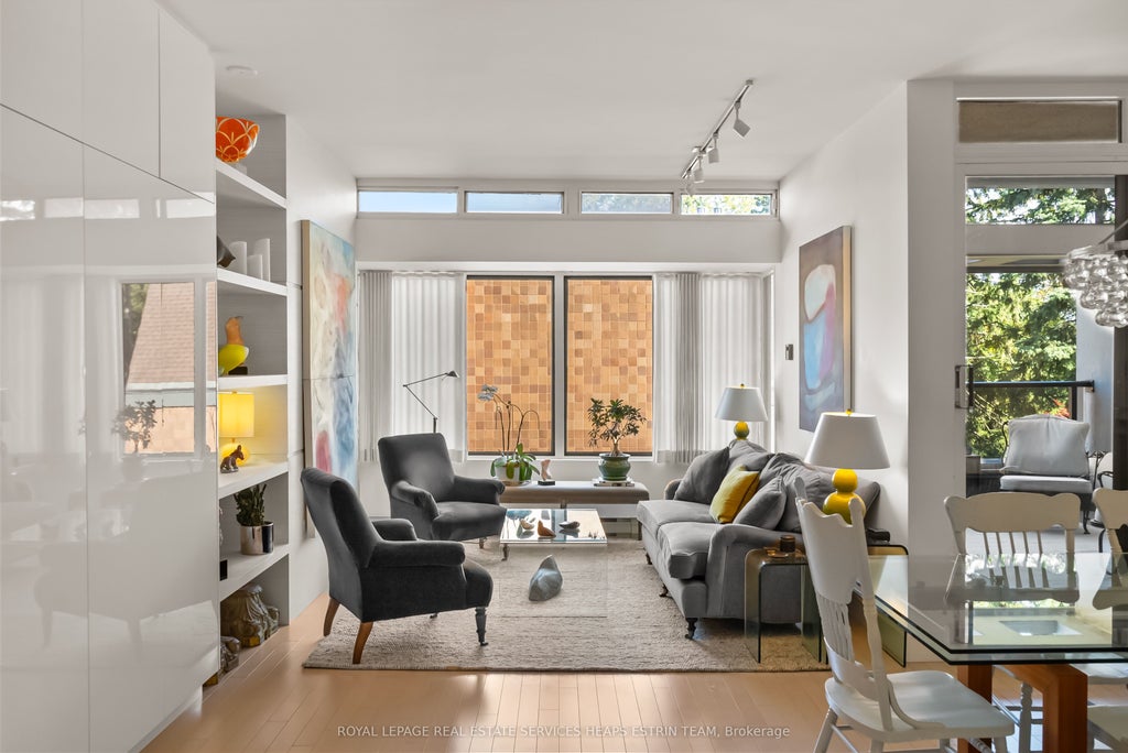 Perfectly positioned between Summerhill and Yorkville, The Oaklands, is one of midtown Toronto's most coveted enclaves - a quiet, tree-lined pocket surrounded by the city's best dining, boutiques, and parks. Just moments from Summerhill Station, Avenue Road, Yonge Street, and Yorkville Village, it offers a sense of calm and privacy rarely found this close to the core. Suite 337 is a stunning two-storey residence offering nearly 1,600 square feet of beautifully proportioned living space, complemented by a private terrace and balcony. Designed for both comfort and sophistication, it blends natural light, thoughtful updates, and a refined sense of scale.The main level is open, airy, and connected. A newly renovated kitchen with Fisher & Paykel and Panasonic appliances anchors the space with clean lines and warmth. Soft stone counters and sleek cabinetry flow into the living and dining area, framed by floor-to-ceiling windows and a walk-out to an east-facing terrace - a tranquil setting for morning coffee or evening wine. A powder room and custom built-in millwork complete this floor.The lower level serves as the home's private retreat. The primary suite features a walk-through dressing area, a spa-inspired ensuite, and balcony access shared with the second bedroom. The second bedroom is spacious and bright - ideal for guests or a home office. A laundry and storage room, plus a versatile reading nook, provide exceptional functionality. Meticulously maintained and tastefully updated, this residence offers the comfort of a house with the ease of condominium living. Within the Cottingham School District and surrounded by Summerhill's architectural charm, Suite 337 at 40 Oaklands Avenue is a rare opportunity - a modern midtown sanctuary that blends privacy, elegance, and connection.