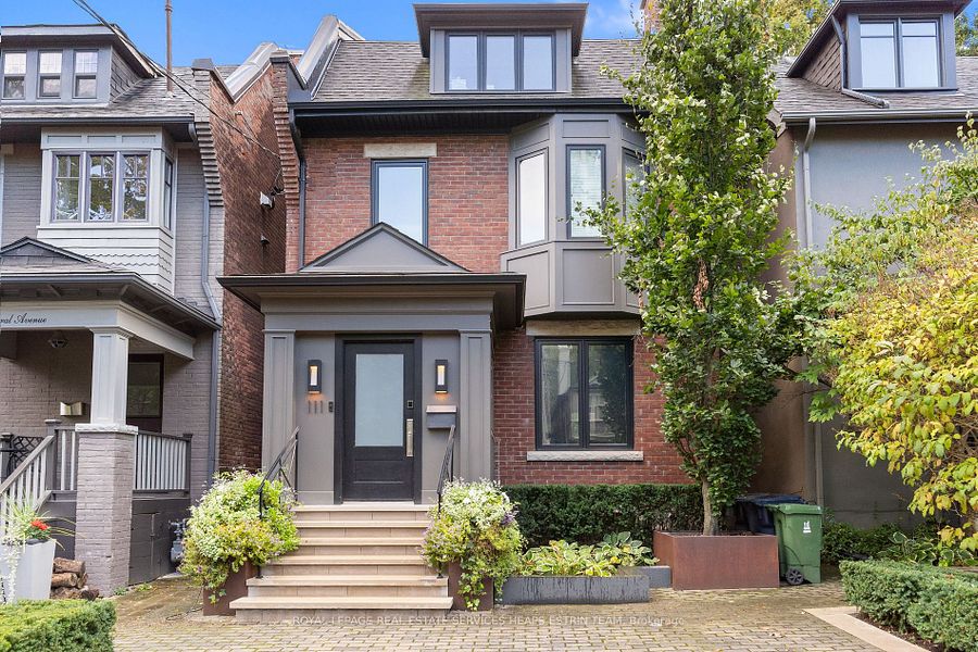 Welcome to 111 Balmoral Avenue, a beautifully renovated detached home in one of Toronto's most sought-after neighbourhoods. This stunning residence, designed with warm, modern finishes, offers four spacious bedrooms and five bathrooms, making it the perfect retreat for family living. The thoughtful layout and high-end features create an exceptional balance between style and functionality. Inside, the principal rooms flow seamlessly throughout the main level. The gourmet chef's kitchen features custom cabinetry, an expansive centre island, and striking herringbone tile at the heart of the home. High ceilings and a wall of sliding glass doors create a seamless connection between the family room and the private backyard. This tranquil space is perfect for al fresco dining, outdoor relaxation, or hosting summer gatherings. The upper floor houses a primary suite of rare refinement. Natural light illuminates the space through expansive windows, highlighting the exceptional craftsmanship. The suite's storage has been thoughtfully considered, featuring twin custom closets complementing an extensive walk-through wardrobe. In the ensuite bathroom, clean architectural lines define the space: a floating vanity with double basins demonstrates restrained luxury, while heated floors and a walk-in shower elevate the daily ritual. The 2nd bedroom maintains the home's standard of sophistication with built-in closets and a private terrace. The home continues to impress on the third level, with the 3rd bedroom featuring skylights, custom closets, and a walkout to another private terrace. The 4th bedroom, with custom built-in closets and a three-piece bathroom, complete the floor. The lower level of the home is designed for versatility, offering a recreation space perfect for family activities and currently used as a gym. This level also features an additional room that could serve as a home office or a nanny suite, with the added convenience of a walkout to the backyard.