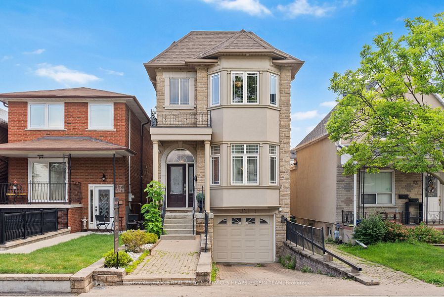 Experience the elegance of 15 Watt Avenue, a beautifully maintained and thoughtfully designed 4+1 bedroom, 4 bathroom family home offering over 2,500 sq. ft. of refined living space. Situated in a vibrant and walkable neighbourhood, this residence combines upscale finishes, versatile spaces, and income-generating potential with a private nanny/in-law suite. The main floor welcomes with a grand foyer leading into an expansive open-concept living and dining room enhanced by rich hardwood floors and crown moulding. The chef-inspired kitchen features ample cabinetry, generous prep space, and upgraded stainless steel appliances (2022), seamlessly flowing into the family room with a gas fireplace, perfect for entertaining or relaxed family living. A discreet oversized powder room completes the level. The skylit second floor offers a spacious landing and oversized linen closet. The primary retreat boasts two closets, a cozy gas fireplace, and a spa-like ensuite with jacuzzi tub. Three additional bedrooms, including an oversized sunlit south-facing room, and a double-sink main bathroom complete this level. The fully finished lower level includes a private suite with separate kitchen, bedroom, living space, full bath, laundry, and direct garage access. Ideal for guests, extended family, or rental income. Outdoors, enjoy an east-facing backyard with elevated balcony, landscaped garden, shed, and external storage. Parking for three with a one-car garage and two-car driveway. Steps to cafes, shops, parks, schools, St. Clair streetcar, and the Eglinton Crosstown LRT. A rare and luxurious urban opportunity.