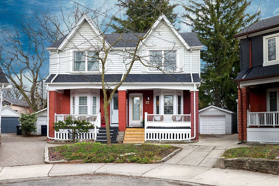 Picturesquely situated on a quiet cul-de-sac in the heart of Davisville Village, this light -filled three-bedroom home is a true rarity, offering beautiful curb appeal and a rare pie shaped, oversized stunning backyard. Meticulously maintained, 22 Forsyth Crescent has been lovingly cared for by two families since it was built in the 1920s. Main Floor with new hardwood floors, a large living & dining room and a thoughtfully-laid out kitchen Sliding doors in the kitchen open onto a newly constructed large deck overlooking backyard. Second floor offers three well-proportioned bedrooms, including a spacious & sun-filled south facing primary bedroom with vaulted ceiling, two skylights and wall-to-wall closets. In addition to the three bedrooms, the second level offers a newly renovated & perfectly designed four-piece washroom. Lower level boasts spacious recreation room, laundry room, second three-piece washroom. Detached garage with parking for two cars. Oversized lot is a gardener dream. Spanning close to 2000 square feet across all levels.
