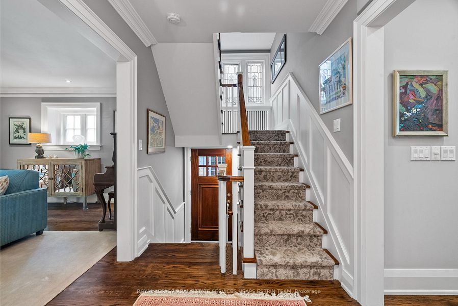 Located on one of the most desirable streets in the coveted pocket of Moore Park, this wonderful 4+1 bedroom has been renovated throughout. The main floor living room has a wood burning fireplace and double doors to the charming and romantic covered front porch. As you walk through the foyer to the newly renovated (2019) open concept chef's kitchen and open family room /dining room space you will enjoy the vistas offered through the floor to ceilings sliding doors. This great rooms extends to the beautifully landscaped backyard. Ascend the stairs to the second floor with large primary bedroom complete with five-piece ensuite and walk-in closet with custom cabinetry. There are two additional bedrooms on this floor with a shared four-piece washroom. One could also be an office or second floor family room as it has a gas fireplace and built-in desk. The third floor has a fourth bedroom and a nice sized home office. The lower level is complete with nice sized recreation room, perfect for family gatherings. On this level there is also a two-piece powder room, laundry room with custom cabinetry, a work room/furnace room with additional storage and a temperature controlled wine closet. The backyard hosts a large garden shed, perfect for bikes and garden tools and a lovely stone patio great for entertaining. In district for highly acclaimed Deer Park JR/SR School, Northern SS and North Toronto. In close proximity to some of the top private schools including Branksome Hall, Greenwood School and the York School. Minutes away from the Beltline and ravine walking trails and in easy walking distance to the subway, shops and restaurants at Yonge and St. Clair. Permit parking on the street.