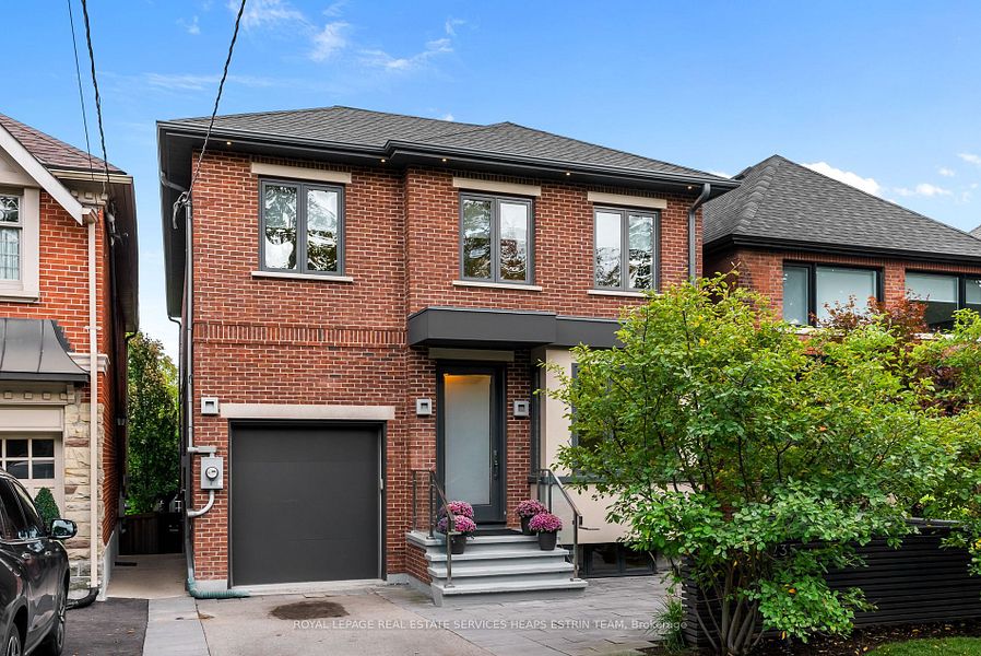 Perfectly situated in the highly coveted neighbourhood of South Leaside, this detached four-plus one-bedroom home has stunning curb appeal, a private drive and ample parking. Spanning over 4,500 square feet of beautifully finished living space across three levels, it offers the most functional floor plan and ample space for a growing family. Designers own home, it feels as though you are walking through the pages of a design magazine. The main level features a welcoming grand foyer with a herringbone tile floor, flanked to the right by a bright living room and to the left by a charming main-floor office space. Past the living area is the spacious and elegant dining room, seamlessly connecting to a stunning kitchen via a butler's pantry. The stunning chefs kitchen has top-of-the-line appliances and a marble waterfall island. This space overlooks an oversized family room and an exterior terrace and pool. The terrace has panoramic view of a meticulously designed back garden with water feature, atmospheric lighting and saltwater pool creating an outdoor oasis. A side entrance opens into a spacious mudroom equipped with a ventilated sports closet. The second level features four bedrooms and three bathrooms. The spacious primary suite has a Juliet balcony overlooking the back garden and a two-sided fireplace. This private retreat also includes a walk-through closet leading to a luxurious ensuite adorned with mahogany accents, a deep soaking tub, a generous shower, dual vanities, a toilet, and heated floors for added comfort. This level also houses three generously sized bedrooms, one complete with a walk-in closet and ensuite, and the others feature a semi-ensuite. The lower level features an expansive recreational space with a floor-to-ceiling sliding glass doors that open to the outdoor oasis. There's also a sizable office (or potential bedroom) and a semi-ensuite bathroom leading to another large bedroom featuring two closets There is also a substantial laundry room.