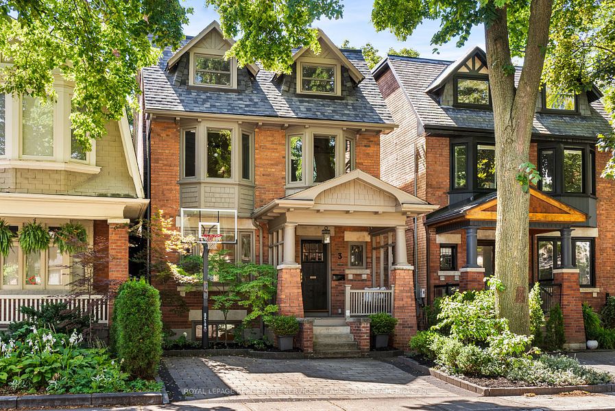 A rare offering in coveted Playter Estates. Elegantly situated on the south side of a quiet, tree-lined street, this exceptional detached home sits on a 25x110 foot lot, offering timeless character with contemporary finishes. Boasting over 3,100 square feet, this light-filled home seamlessly delivers an elevated living experience with heritage design. Hardwood floors greet throughout with an elegant living room with built-in shelving and wood fireplace. The open-concept dining room with banquette seating overlooks a bright modern kitchen with an oversized island offering ample seating and storage. French doors from the bright mudroom lead to a beautifully-appointed garden, with a two-tiered deck with room for both outdoor dining and multiple conversation spots, with steps down to an extensive, lush garden and additional outdoor living spaces. The airy second floor leads into three spacious bedrooms with built-in shelving, with two offering bay windows. A second-floor laundry is conveniently located next to a modern three-piece bath, and a step down takes you to the airy, sunny sunroom/office overlooking the yard. The third floor offers a serene, oversized master bedroom with a dressing room area, 3-piece bath, ample closet space and a sitting room with built-in shelving, making it the ideal retreat. The lower level, designed in 2020, offers almost 900 square feet of living spaces, making it an ideal spot for the whole family to come together. A generous-sized recreation room is accompanied by a three-piece bath and wetbar, ideal for family nights in. An additional space can be used as a play room, office or nanny/in-law suite, with side-door access and storage throughout. Accompanied by a two-car driveway, this distinguished home is a unique find in a highly-desirable pocket of the city. Within the Jackman Public School and Riverdale Collegiate school districts, and steps to the well-loved shops, cafes and restaurants on the Danforth, this home is not to be missed.