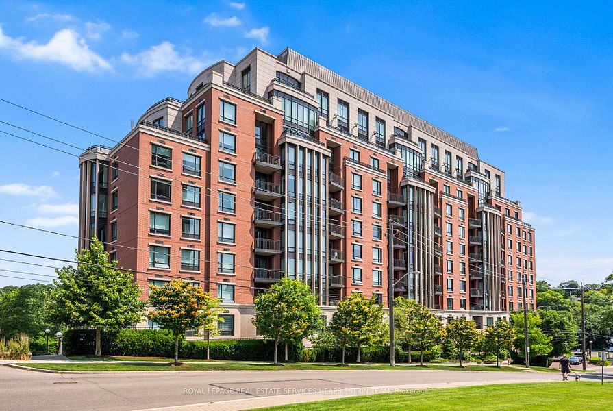 Welcome to refined, luxurious living at the prestigious River house at the Old Mill. Perfectly positioned beside the tranquil Humber River and steps from the iconic Old Mill Hotel & Spa, this rarely offered two-bedroom, two-bath suite offers elegance, comfort, and an unparalleled lifestyle in one of Toronto's most coveted enclaves. Suite 610 impresses from the moment you arrive with over 1100 square feet of beautifully designed living space, soaring 10-foot ceilings, and floor-to-ceiling windows that flood the home with natural light and showcase breathtaking south-east views of the city skyline and lush surrounding landscape. The open-concept living and dining areas are ideal for both entertaining and everyday living, featuring rich hardwood floors, a gas fireplace, and seamless flow into the contemporary chefs kitchen. The oversized primary suite is a peaceful retreat with large windows, ample closet space with built-in organizers, and a luxurious four-piece ensuite with stone finishes. The second bedroom is equally spacious and versatile, offering access to the south-facing balcony, two points of entry including sliding pocket doors and the potential to serve as a den, office, or guest room. Enjoy resort-style amenities including a 24-hour concierge, indoor pool and sauna, fitness centre, party room, elegant lobby with grand piano, library lounge, and visitor parking. Just outside your door, discover a true urban oasis: walk or bike the Humber River trails, enjoy tennis at the Old Mill Club, or explore the charming shops, cafes, and restaurants of Bloor West Village. With Old Mill subway station steps away and the downtown core just 20 minutes by car or transit, convenience meets tranquility in one of Toronto's most scenic and storied neighbourhoods.