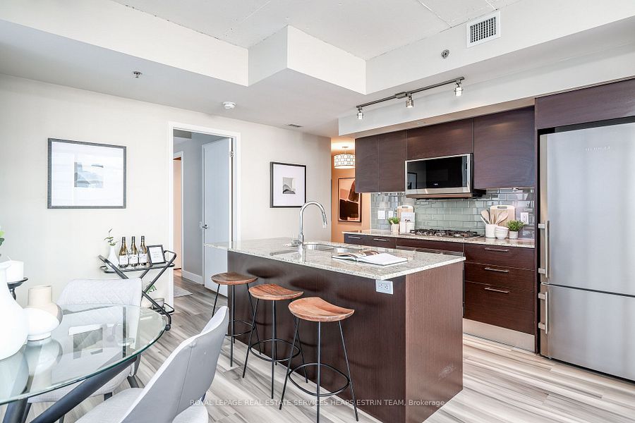 Welcome to Suite 2107, located at 375 King Street West in the prestigious M5V condo building. This suite features two bedrooms and two bathrooms on the 21st floor for an exceptional urban living experience. Enjoy the benefits of city living with this outstanding corner unit, perfectly positioned in a prime location. Upon entry, the suite welcomes with new flooring and a double closet, hosting a stackable washer/dryer. A well-equipped four-piece bathroom leads to a bright kitchen with granite countertops, a gas range, and a walkout balcony featuring a rare gas line for barbecues. The living area, connected to the kitchen, offers stunning city views from the 21st floor. The second bedroom, with a double closet, ensures convenience and flexibility. The primary bedroom, with a walk-in closet and a four-piece ensuite bathroom, adds a touch of luxury. Embrace the dynamic cityscape from the 21st floor, balancing comfort and sophistication.
