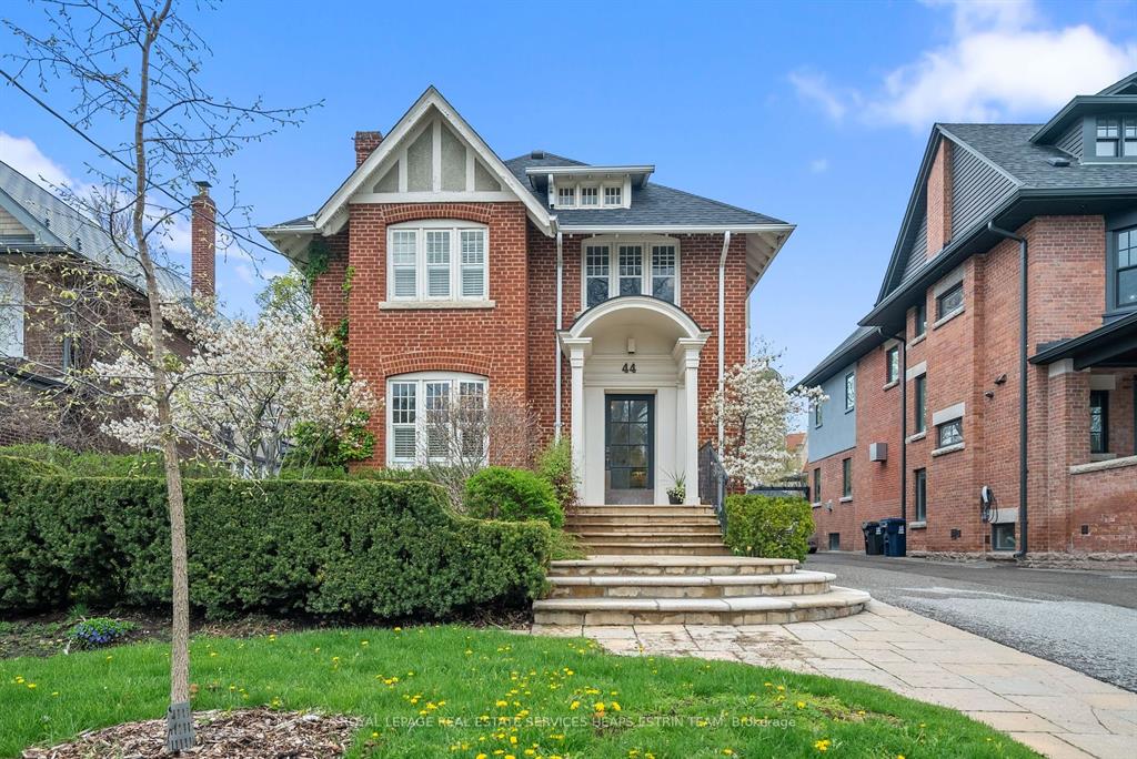 Grand Moore Park home, ideally situated on a quiet block of Glenrose. Gorgeous red brick front facade with beautifully landscaped gardens. Wonderful layout with a spacious living room, and dining room. Large kitchen, connected to a bright breakfast room. Oversized family room with fireplace and high ceilings! Spacious second floor with three well appointed bedrooms including a primary retreat with ensuite and extensive closet space. A bright open-concept third floor hosts a 4th bedroom with ensuite. The lower level offers endless possibilities for customization! Extra large rear yard. Fabulous location within waking distance to Yonge St, the ravine, public transportation and great schools.
