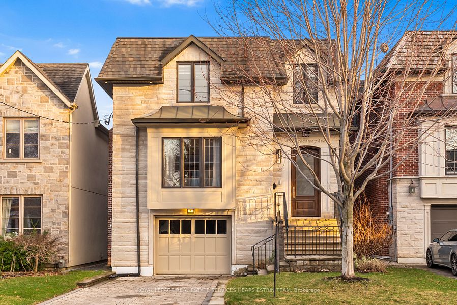 Welcome to 481 Broadway Avenue, a four-plus-one-bedroom, five-bathroom family home in one of Toronto's most sought-after neighbourhoods in North Leaside. Rebuilt in 2014 and offering nearly 3,500 square feet of total living space, this home offers sophistication and timeless charm. The natural stone facade and stone-paved driveway lead to a custom-built garage, with graceful steps to an inviting entryway. Inside, the living room is bathed in natural light with hardwood floors and a sleek wood-panelled gas fireplace. The kitchen features striking cabinetry, Caesarstone countertops, and top-tier appliances, while the adjacent family room is ideal for relaxing. Upstairs, four spacious bedrooms and three bathrooms await, including a serene primary suite with treetop views and a spa-like ensuite. The basement offers a bright recreation room, built-in speakers, and a games area, while a fifth bedroom, currently set up as a home gym, and a three-piece bathroom add versatility to the space. With ample parking and proximity to top schools, parks, and transit, this home is perfectly suited for urban families.