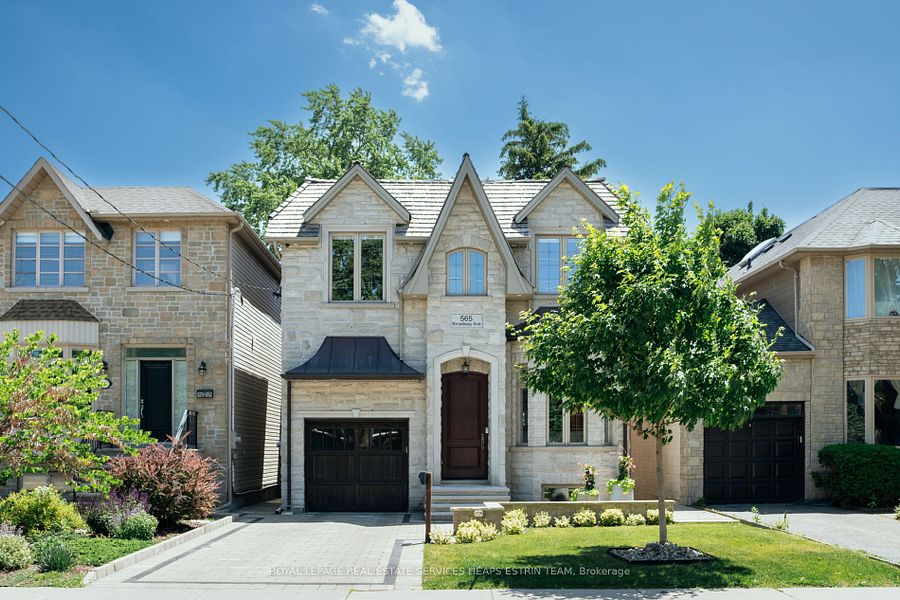 Elegance and quality come together in this North Leaside 4+1 bedroom, 6 bathroom home, setting the stage for a living experience that exceeds the ordinary. Steps away from renowned Northlea Public School and within a short walking distance to Leaside High School, this home also offers access to fabulous neighbourhood amenities and transit options. Stunning curb appeal with a stone facade and all brick exterior, with cedar shingled roof and interlock private drive with built-in garage. Set on an expansive pool-sized 34 x 135 foot sunny south-facing lot overlooked by the huge open concept kitchen/family room. High-end upscale finishes throughout: coffered ceilings, quartz & marble kitchen, Wolf/Subzero appliances, inlaid hardwood floors, built-in speakers with AV system included and more. 10 ft ceilings on main and second levels. The most beautiful primary suite upstairs! Each of the 4 bedrooms has its own marble-clad bath with heated floors. 3 fireplaces, 3 skylights. This home is in pristine condition and offers the perfect floor plan and ample space for a growing family. Not to be missed!