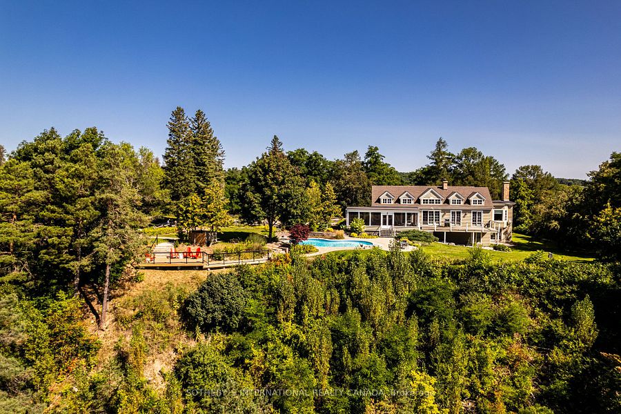 The Most Breathtaking Views! You can see for miles and enjoy the true beauty that Mono has to offer. Rarely does a setting like this come to market; custom built by the current owners, this has been a gathering spot for the family to celebrate milestones, create memories, and have lots of fun times. The Main floor is filled with natural light, cathedral ceilings, two wood burning fireplaces, dining room that will accommodate 16, primary suite, great room, family room, office, and garage access. Lower level has a full walkout, spa, two suites, recreation room/bunk room for the overflow of family and guests. The outdoors - truly a life of its own from the pool, tennis court, room for bacchii ball, badminton, horse shoes, go for a walk and enjoy the trails, or just sit and enjoy the peace and tranquility. Short drive to shops, restaurants, golf, skiing, equestrian, tennis, easy commute to the city or Toronto Pearson Airport. This is where life begins, take a breath you will feel the difference.