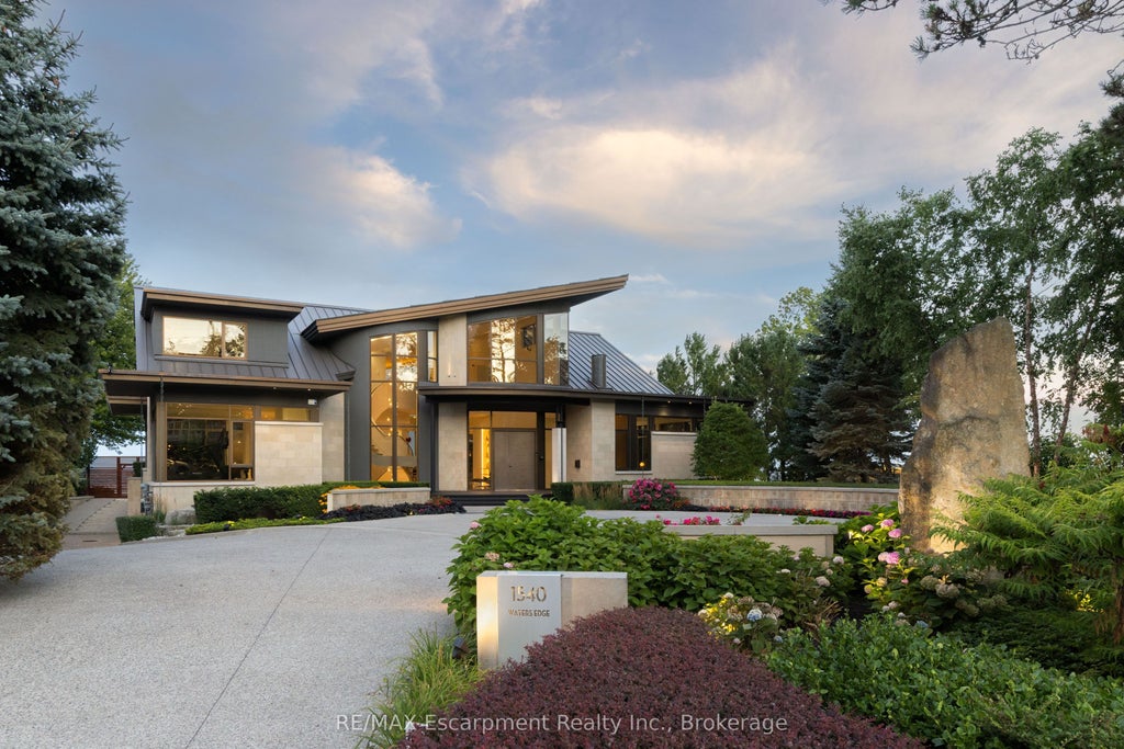 1540 Watersedge Road is a spectacular waterfront estate with jawdropping Toronto skyline views. Modern, private, and completely reimagined with extensive updates on all 3 levels and the exterior, including roof, flooring, staircase, automation, lighting, interior decor, redesigned garage and pool, with exterior landscaping including maintenance free lawn. Every element was designed to capture skyline views, natural light, and a lifestyle without compromise. Set on 0.6 acres along Lake Ontario, the residence showcases bold lines of glass, stone, and steel. Inside, walls of windows frame water and city vistas from every angle. The great room commands attention, anchored by a striking 360-degree fireplace. Heated floors and an elevator to all levels ensures both luxury and ease. A NEFF kitchen with pantry and laundry area balances style and function. The main-floor principal bedroom offers a spa-inspired ensuite and direct walkout to the deck. A versatile flex room, ideal as a gym or office, enhances the living space. Upstairs, three bedrooms with ensuites provide privacy and flexibility- two with terraces that extend directly to sweeping lake views. The lower level is designed for entertainment, featuring a home theatre, games lounge, secondary kitchen for catering and snacks, and guest suite. For the car enthusiast, the garage is exceptional, with epoxy flooring, custom cabinetry, and parking for six vehicles. Outdoors, the property becomes a private resort. A reimagined infinity-edge pool and spa by Gibson Pools stretches toward the horizon. Multiple terraces, dining areas, and lounging spaces are surrounded by perennial gardens and architectural features, blending beauty with simplicity.1540 Watersedge Road is a rare opportunity: a refined estate for contemporary living, equally suited for epic entertaining, where design, privacy, and breathtaking views meet on the lakefront. LUXURY CERTIFIED.