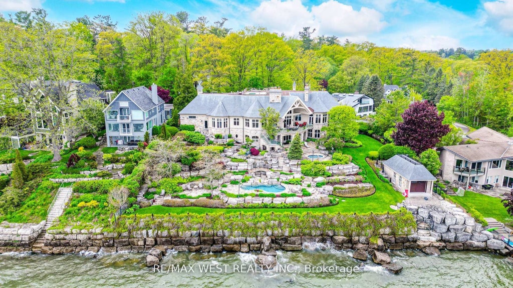 Anchored On More Than Half An Acre Of Riparian Shoreline, Ville Vue Estate Blends Resort Serenity With City Glamour, Offering Uninterrupted Toronto-Skyline Panoramas From A Rooftop Driving Range And Cascading Limestone Terraces That Descend To A Heated Pool, Spa-Style Hot Tub, Twin Stone Fireplaces, And Manicured Gardens. Behind Its Four-Car Gallery Garage, The Sprawling 7,700 Sq Ft Bungalow Marries Old-World Craftsmanship, Think African-Mahogany-Paneled Library With Hidden Wet Bar Yet Still Has Modern Openness, A Culinary Showpiece Kitchen, Grand Dining Salon, Sun-Soaked Great Room, And An Owners Wing Featuring A Private Office, Fitted Dressing Room, And Spa Ensuite, Also Opening Directly Onto The Lakefront Terrace. The Entertainment-Rich Lower Level (Complete With Wet Bar, Climate-Controlled Wine Cellar, Cinema Lounge, Billiards Zone, Professional Gym, And Convertible Guest Suite) Ensures Every Gathering Is Memorable, While Thoughtful Luxuries Such As Main-Floor Laundry, Mudroom, And Abundant Storage Make Daily Living Effortless. From Sunrise Paddleboarding Off Your Own Property To Sunset Cocktails Beside The Waterfall, Ville Vue Delivers An Unparalleled Lakefront Lifestyle. By Private Appointment Only.