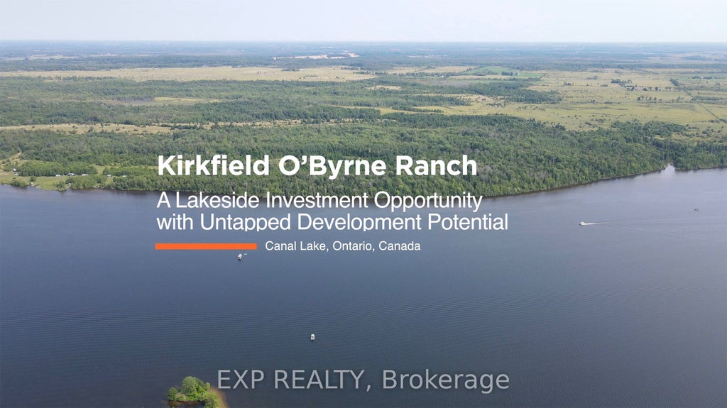 Discover these magical 363 acres of land with over 7,000 ft of frontage on Canal Lake located just northwest of the Hamlet of Kirkland. Accessed via municipally maintained roads Lift Lock Road West and Deer Run Lane, the subject lands provide a tranquil retreat in a convenient location. Canal Lake is the perfect destination for boating enthusiasts, offering access to the Kawartha Lakes section of the Trent-Severn Waterway. Explore the area's natural wonders, including Lake Simcoe, just 7 km west of the lake, and pass through the famous Kirkfield Lock, the second-highest hydraulic lift lock in the world. With a lift of 15 m (49 feet), the Kirkfield Lock is situated at the highest point along the Waterway, boasting breathtaking views at 840.50 ft above sea level. PERMITTED USES: Agricultural or Forestry, Agricultural produce storage facilities, riding and/or boarding stables, Cemeteries, Market Garden farms, Nurseries or Commercial Greenhouses, Seasonal fruit, vegetable, flower or farm produce sales outlet, Farm Implement Dealer, Single Detached Dwelling, buildings and structures accessory to the foregoing uses, Home Occupation, Seasonal Farm Residential Use is subject to Section 14.27 in the General Provisions B/L 2007-289l. Cannabis Production and Processing Facilities is subject to Section 14.29 in the General Provisions. B/L 2021-057. **EXTRAS** 7000 Feet of direct waterfront on Canal Lake.