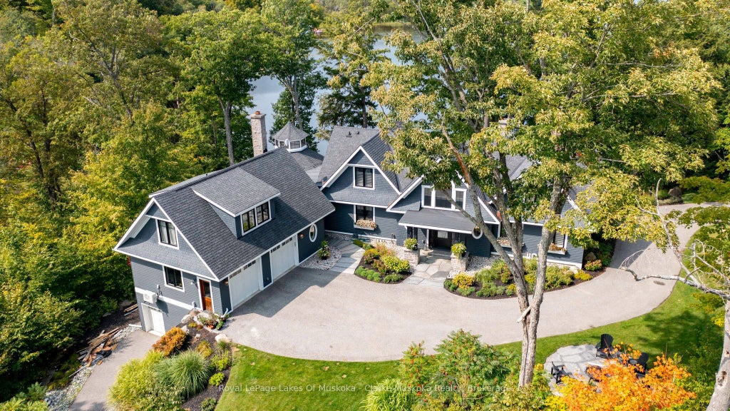 Set on the northwestern shores of Lake Muskoka with 325 feet of waterfront, this stunning Muskoka estate offers the perfect combination of privacy and space. The two-storey cottage features a finished walkout basement, an attached two-car garage with upper-level accommodations, and a double-slip boathouse with a private suite above.Inside, the home is designed for both living and entertaining. The main floor flows from a living room with a large stone fireplace to an open kitchen and dining area, anchored by a unique octagonal sitting room with windows on all sides. The primary bedroom is a retreat, complete with a walk-in closet and a 6-piece ensuite featuring double vanities, a freestanding tub, and a glass shower.Upstairs, there are multiple bedrooms, including a Jack-and-Jill suite, while the lower level offers a gym and sauna. Outdoor spaces provide plenty of room for gatherings, all with direct access to the lake. This property offers a true Muskoka experience, combining comfort, versatility, and lakeside living at its best.